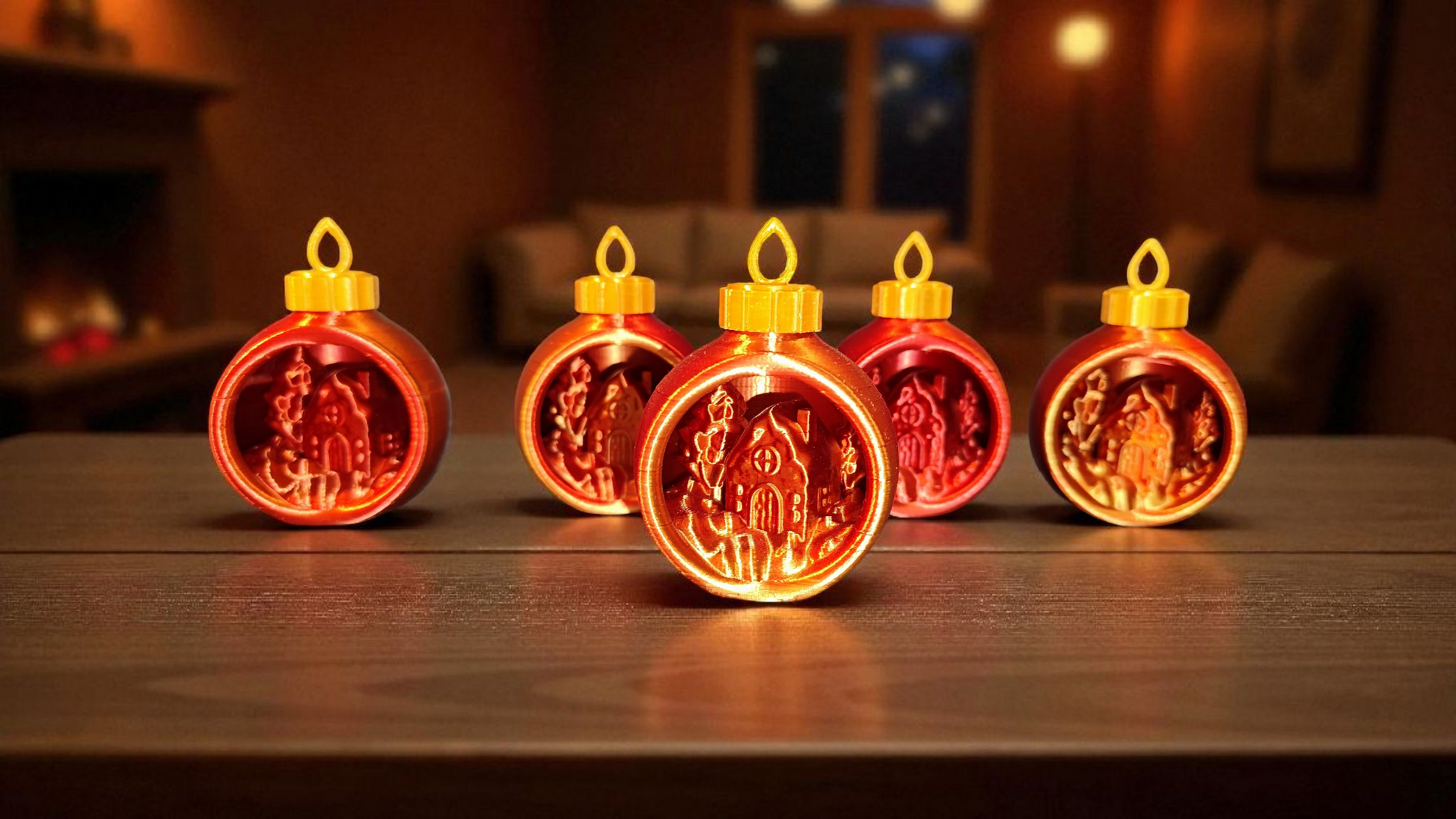 3D Christbaumkugel mit Winterdorf | Wunschfarbe | PLA