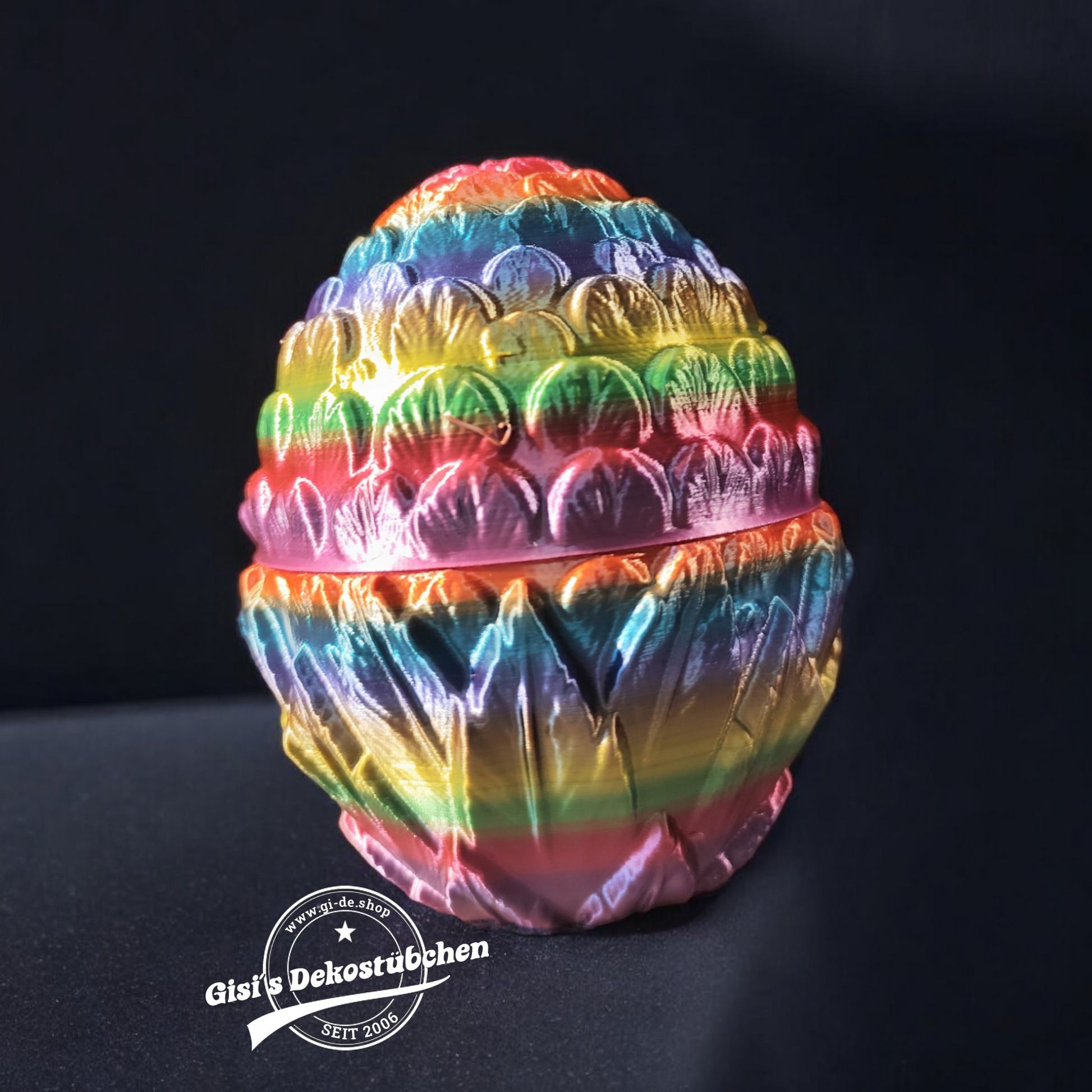 Sie können dieses Ei mit Überraschungsfigur bestellen. Dieses kann enthalten: Schlüsselanhänger, Drachen, Hunde, Dino und und und